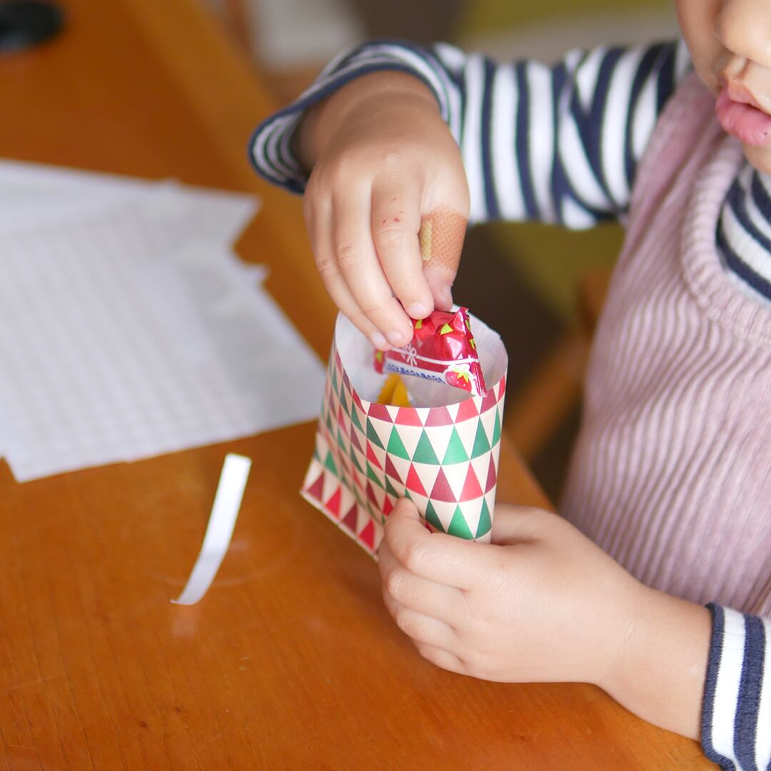組み立て、お好きなお菓子を入れるだけ♪